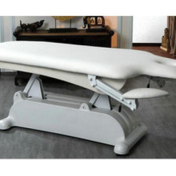The Lind 3-Motor High Performance Electric Massage & Physiotherapy Bed is suitable massage, spa and physiotherapy treatments. Equipped with 3 motors that control height, backrest and central module movements. Double-arm adjustable supports, headrest with breather hole and an extra postural cushion. Sturdy metal frame with retractable wheels to facilitate its easy movement. White PU upholstery is high quality and easy cleaning with high density padding.