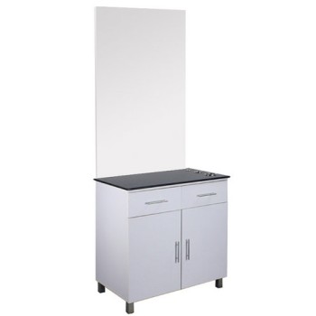 The Aston styling station is a classic and sophisticated model. Has the option to add a genuine granite granite counter top. It features 2 drawers, 1 storage cabinet, and 3 tool holes; this styling station is a client favorite. Available in 4 colors.