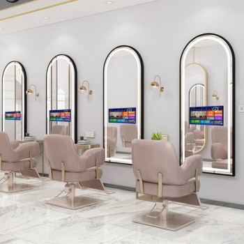 Barber Shop TV Glass Beauty Mirror Hairdressing Vanity Desk Styling Station Salon Makeup Lighted Standing Walled Mirror